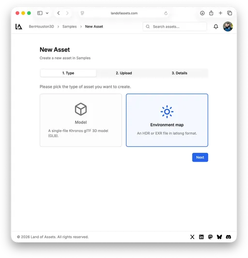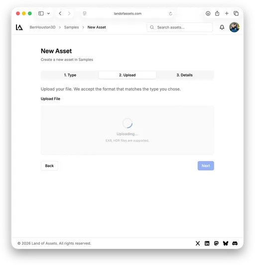 We said we’d support Images, Environments (HDRIs), and Materials in our near-term roadmap. Beta 2 delivers on environments: you can now upload and manage ENV map assets in both EXR and HDR formats.